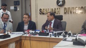 * आज सियालदह डिवीज़न के DRM राजीव कुमार सक्सेना ने एक प्रेस कॉन्फ्रेंस के ज़रिए बताए।