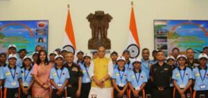स्वतंत्रता दिवस समारोह में हिस्सा लेने आये 30 आदिवासी छात्रों से मिले रक्षा मंत्री