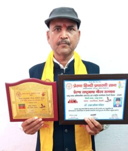 भारत पोस्ट जबलपुर – प्रेरणा हिंदी प्रचारिणी सभा हिंदी के प्रचार-प्रसार में सतत प्रेरणादायक कार्य कर रहे मनीषियों को सम्मानित कर रही है और इसका मुख्य उद्देश्य हिंदी प्रचार प्रसार व राष्ट्रभाषा अभियान को गतिशील बनाए रखना है। इस तारतम्य में प्रेरणा हिंदी प्रचारिणी सभा के महासचिव प्रदीप मिश्र अजनबी दिल्ली ने डाॅ रामप्रवेश पंडित पलामू झारखण्ड को प्रेरणा राष्ट्रभाषा गौरव सम्मान प्रदान किया।