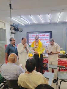 न ई दिल्ली । प्रेरणा हिन्दी प्रचारिणी सभा का दो दिवसीय हिन्दी सम्मेलन न ई दिल्ली के करोल बाग एवं लाल किले के समक्ष आयोजित हुआ। इस आयोजन के अन्तर्गत डा. सोमनाथ शुक्ल, प्रयागराज को हिन्दी गौरव रत्न सम्मान से सम्मानित किया गया। प्रेरणा हिन्दी प्रचारिणी सभा के संस्थापक श्री संगम त्रिपाठी ने डाॅ. सोमनाथ शुक्ल को यह सम्मान प्रदान किया । इस अवसर पर प्रेरणा हिन्दी प्रचारिणी सभा के महासचिव श्री प्रदीप मिश्र अजनबी, प्रेरणास्रोत श्री धर्म प्रकाश वाजपेयी एवं देश भर से आये हुए कवि, साहित्यकार, समाजसेवी, पत्रकार, उद्यमियों की गरिमामयी उपस्थिति में अभिव्यक्ति सभा, विचार विमर्श एवं कवि सम्मेलन का आयोजन भी किया गया । देश भर से लगभग डेड़ सौ हिन्दी प्रेमियों ने इस कार्यक्रम में सम्मिलित होकर हिन्दी को राष्ट्रभाषा बनाये जाने हेतु विचार विमर्श किया।