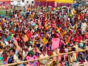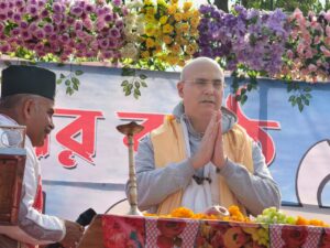 अजित प्रसाद,कूचबिहार(पश्चिम बंगाल ) : पश्चिम बंगाल के कूचबिहार जिले के अंतर्गत दिनहाटा-2 ब्लॉक के सुदूर ग्रामीण क्षेत्र ‘अबुतारा’ में शनिवार को एक अभूतपूर्व दृश्य देखने को मिला। यहाँ के स्थानीय फुटबॉल मैदान में आयोजित ‘हजारों कंठों में गीता पाठ’ (हजार कंठे गीता पाठ) कार्यक्रम में आस्था का ऐसा सैलाब उमड़ा कि आयोजकों के लिए व्यवस्था संभालना मुश्किल हो गया।