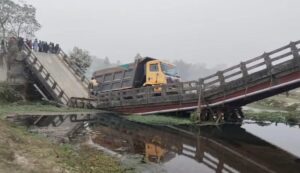 अजित प्रसाद, कूचबिहार, पश्चिम बंगाल : कूचबिहार जिले के शीतलकुची अंतर्गत लालबाजार ग्राम पंचायत के बारोमासी इलाके में एक बड़ा हादसा हो गया। यहाँ भारी मालवाहक डंपर के गुजरने के दौरान गिरिधारी सेतु अचानक भरभरा कर ढह गया। इस घटना के बाद इलाके में भारी तनाव और उत्तेजना का माहौल है।स्थानीय सूत्रों के अनुसार, शुक्रवार सुबह एक भारी डंपर शीतलकुची से सिताई की ओर जा रहा था। जैसे ही डंपर ने गिरिधारी सेतु पर चढ़ना शुरू किया, जर्जर हो चुका पुल डंपर का भार सह नहीं पाया और बीच से टूटकर गिर गया। गनीमत यह रही कि इस हादसे में अब तक किसी के हताहत होने की खबर नहीं मिली है, लेकिन पुल का एक बड़ा हिस्सा पूरी तरह क्षतिग्रस्त हो गया है।पुल गिरने की घटना ने स्थानीय लोगों के गुस्से को भड़का दिया है। ग्रामीणों का आरोप है कि:यह सेतु बहुत पुराना था और लंबे समय से बेहद जर्जर और कमजोर स्थिति में था।प्रशासन को इसकी स्थिति के बारे में पता था, फिर भी पुल पर भारी वाहनों के प्रवेश को रोकने के लिए कोई निषेध नोटिस या बोर्ड नहीं लगाया गया था।बिना किसी चेतावनी के भारी वाहनों का आवागमन जारी रहने के कारण ही यह हादसा हुआ।