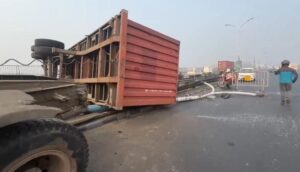 हुगली सेतु पर सुबह-सुबह बड़ा हादसा: डिवाइडर से टकराकर पलटा कंटेनर, यातायात बाधित