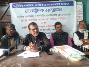 अजित प्रसाद,मुर्शिदाबाद (पश्चिम बंगाल ) :मुर्शिदाबाद जिले में बंगालियों के नागरिक अधिकार और सार्वभौमिक मताधिकार की रक्षा के लिए आगामी 27 जनवरी (मंगलवार) को 12 घंटे के जिलाव्यापी बंद का आह्वान किया गया है। यह बंद SIR (Special Intensive Revision) सुनवाई को तुरंत रोकने और NRC को पूरी तरह रद्द करने की मांग को लेकर बुलाया गया है।आयोजकों के अनुसार, यह बंद सुबह 6:00 बजे से शाम 6:00 बजे तक प्रभावी रहेगा। विरोध प्रदर्शनकारियों का आरोप है कि ‘विशेष गहन संशोधन’ (SIR) के नाम पर आम नागरिकों को परेशान किया जा रहा है और उनके मताधिकार को छीनने की साजिश रची जा रही है। उनका कहना है कि नागरिकता के नाम पर पैदा की जा रही अनिश्चितता लोकतांत्रिक ढांचे के खिलाफ है।