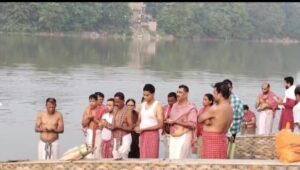 पितृ पक्ष के अंत और देवी पक्ष के आरंभ के उपलक्ष्य में उत्तर बंगाल में तर्पण ।
