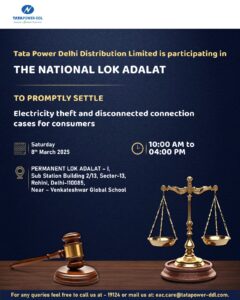 टाटा पावर-डीडीएल आगामी 8 मार्च, 2025 को नेशनल लोक अदालत में करेगी बिजली चोरी और डिस्कनेक्टेड कनेक्शनों के मामलों का तत्काल निपटारा