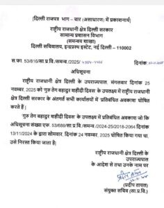 दिल्ली सरकार द्वारा गुरु तेग बहादुर साहिब जी के शहीदी दिवस पर सरकारी अवकाश की घोषणा का स्वागत ।