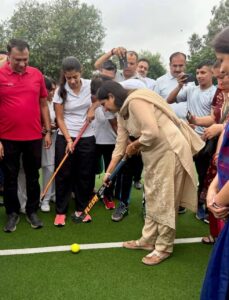 कमलजीत सहरावत द्वारा महिला हॉकी लीग और सांसद खेल महोत्सव का शुभांरभ ।