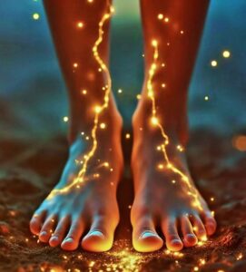 प्रत्येक तलवे में \text{1,44,000} क्रिस्टलीय तंत्रिका सिरे होते हैं—जो \text{Schumann Resonance} (पृथ्वी की आवृत्ति की गूंज) के अनुरूप बायो-रिसीवर हैं।